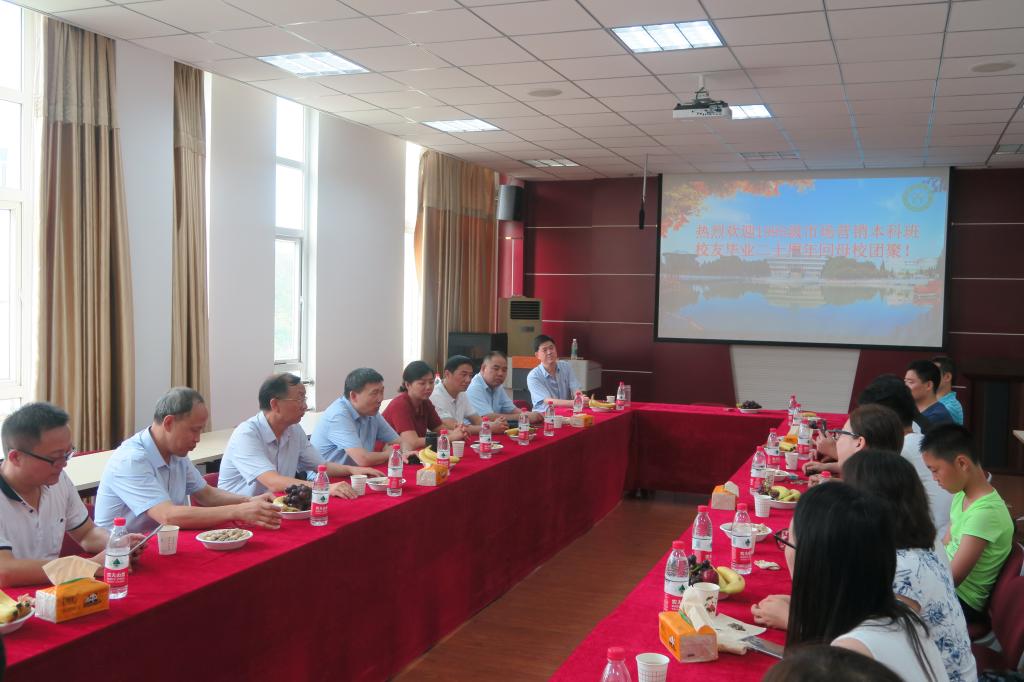 7月20日上午,Bsport体育在经管楼310举办1995级市场营销专业本科班毕业二十周年校友聚会,副校长王文臣,教务处处长郑云,校工会副主席陈以根,旅游学院副院长潘国兵,Bsport体育党委书记盛正国、副院长梅士建、市场营销教研室教师陈金先,各位校友等参加了聚会。