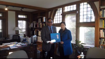 在美国米勒斯维尔大学,郑云院长与该校副校长、教务长Vilas A. Prabhu,副教务长Jeff.Adams,人文、社会科学学院院长Dr. Diane Umble等有关负责人进行了座谈,就两校在教师培训、联合办学、访问学者、交换生等合作事宜进行了具体沟通。访问期间,郑云院长一行还参观了该校的管理与营销系、财务与金融系、国际交流合作中心、图书馆等。