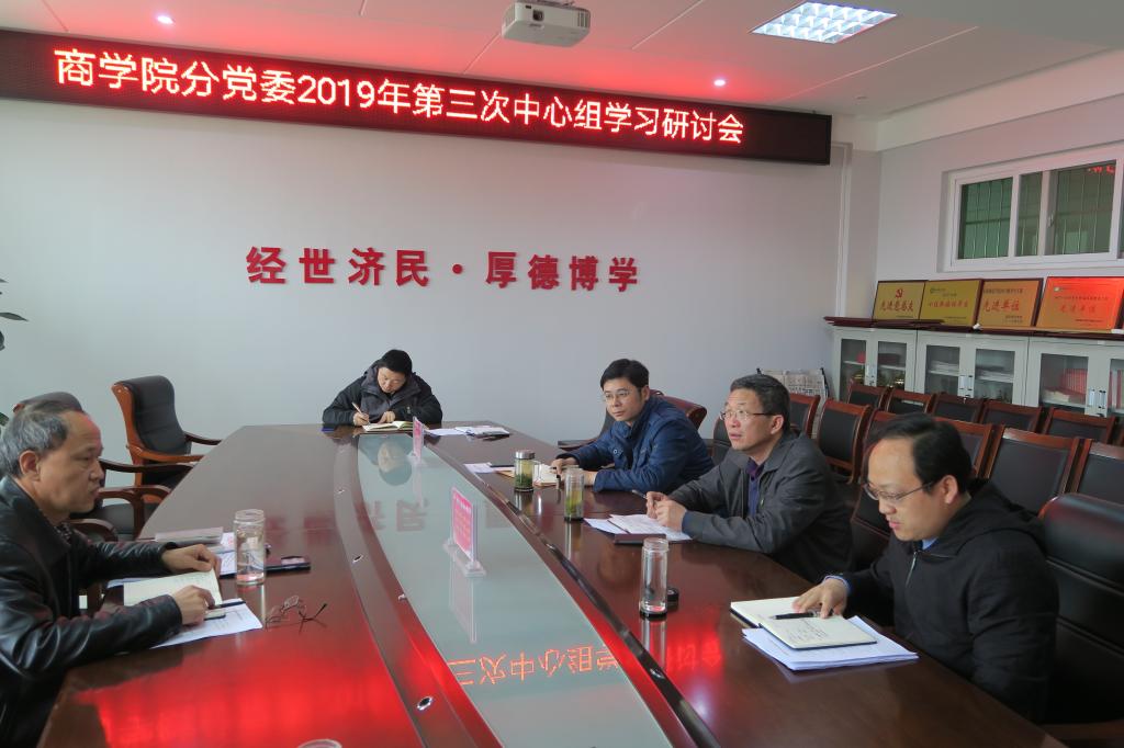 4月29日下午,Bsport体育分党委2019年第三次中心组集中学习在经管楼506会议室进行,Bsport体育党政领导班子成员参加会议。会议由分党委书记盛正国主持。