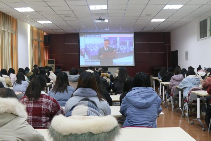 为了深入贯彻落实党的十九大和十九届二中、三中、四中、五中全会精神,深入学习习近平法治思想,弘扬宪法精神,维护宪法权威,12月4日上午,信阳师院Bsport体育于经管楼310会议室组织观看国家宪法日“宪法晨读”活动。Bsport体育党委副书记王永贵、副处级辅导员张海霞带领辅导员老师、学生党员代表、学生干部代表等近百人参加活动。此外,广大学生通过宿舍室友集中观看、个人自学的方式参与到国家宪法日“宪法晨读”活动中来。