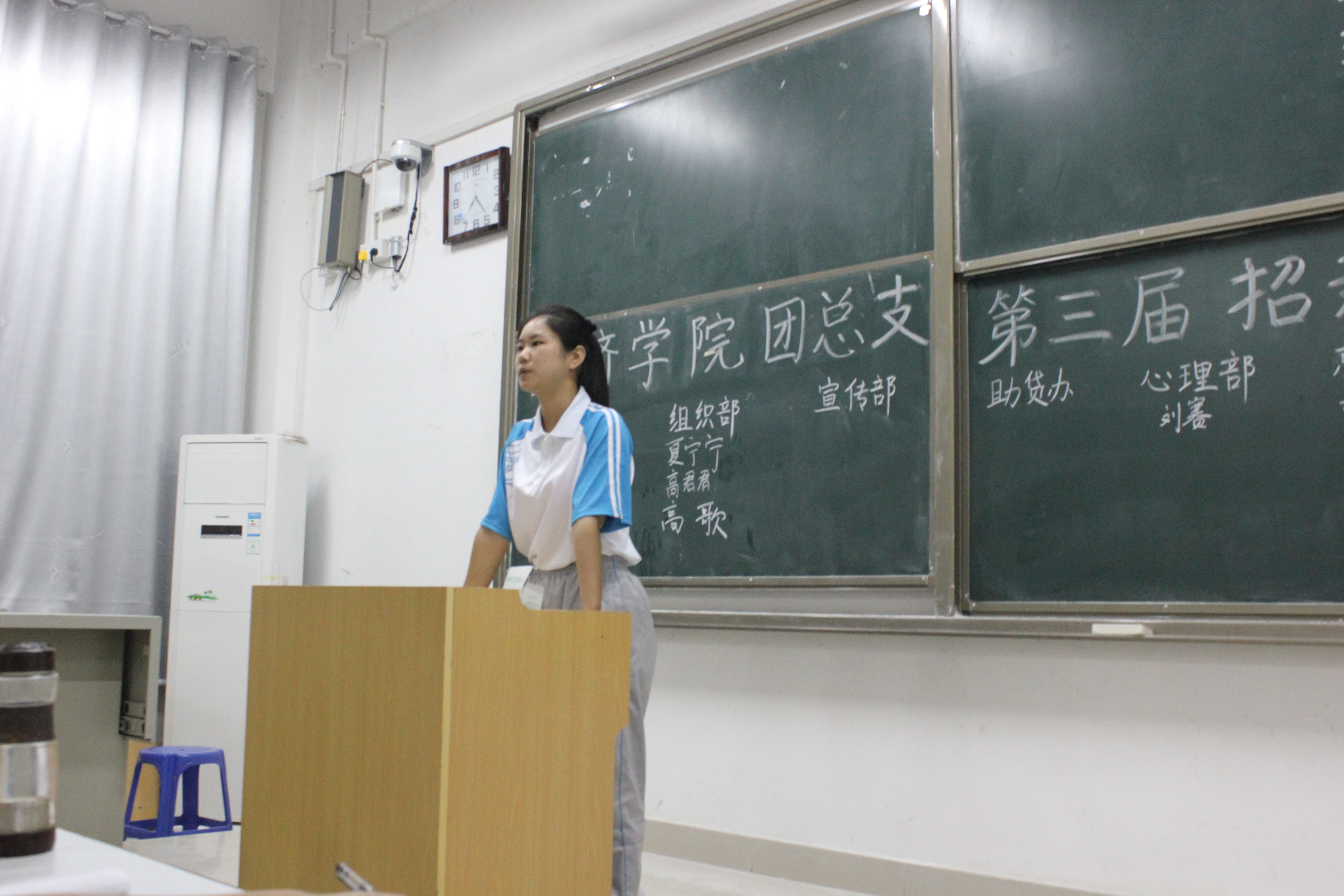 传递优良作风,注入新生活力,9月21日晚七点在经管楼101教室举行了“经济学院团总支第三届招新大会”。团总支副书记石琳峰及各部部长、副部长出席会议,竞选新生参加会议。会议由办公室负责人韩凯伦主持。