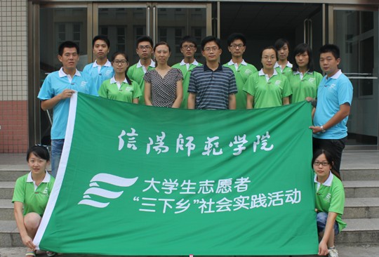 以“凝聚青春力量,实践中国梦想”为主题的信阳师范学院2013年暑期“三下乡”社会实践活动在信阳师范学院各学院如火如荼的进行。经济学院赴信阳市邮政储蓄银行菁英训练营暑期社会实践在7月7日上午正式启动,由经济学院党总支副书记房加帅、团总支书记张海霞带领志愿服务队在经管楼前举行出征仪式。