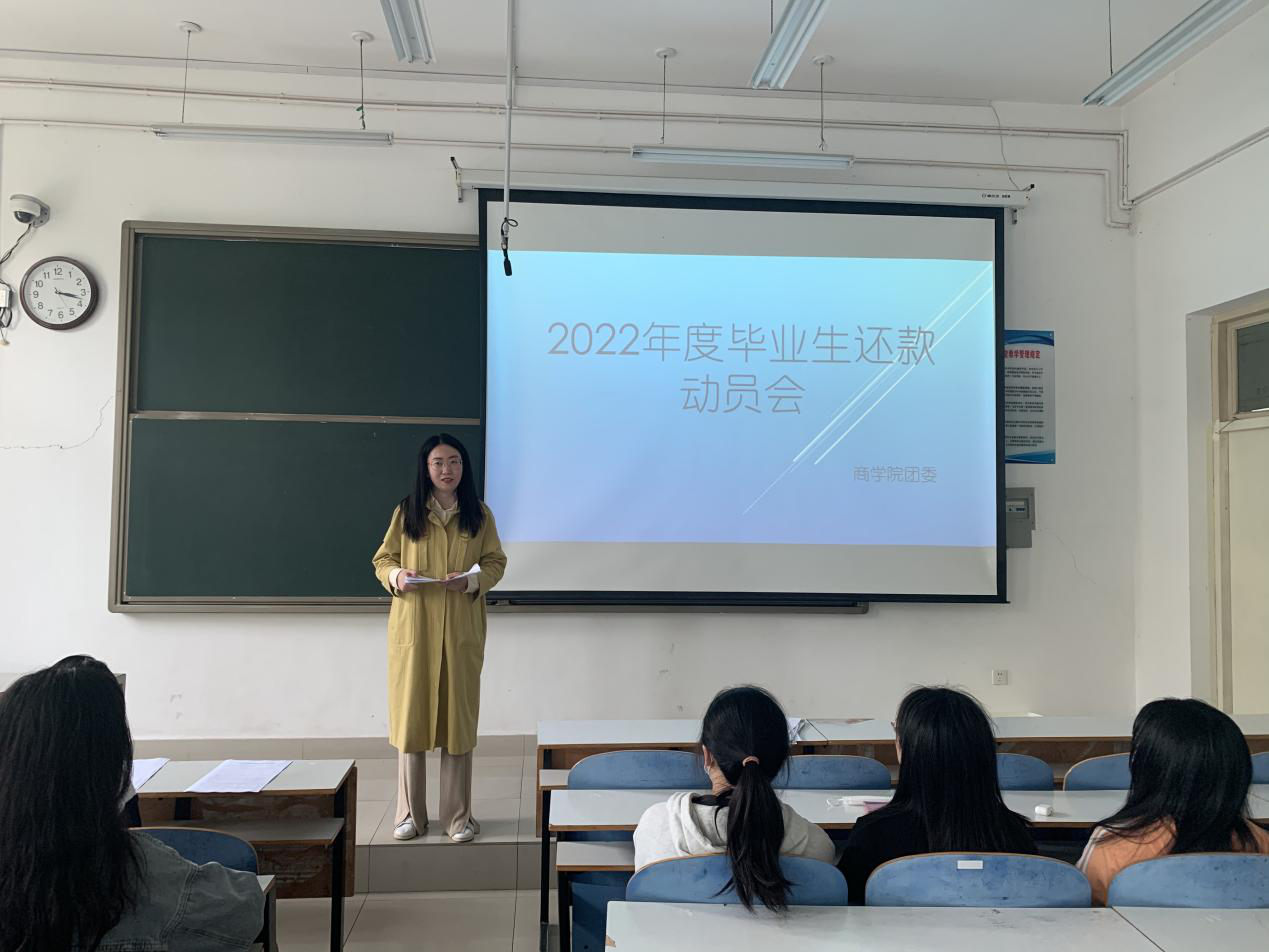 为扎实做好2022届贷款毕业生的毕业确认、信息采集工作,确保我校国家助学贷款工作顺利推进,5月10日下午,我院在经管楼205教室召开毕业生还款动员会,资助专员杨紫涵主持会议。