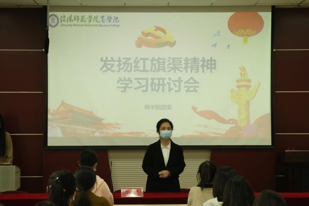 会议伊始,李梦结合视频资料对红旗渠修建的原因、过程进行了详实介绍。李梦指出,红旗渠不仅仅是林县人民穿山凿壁,历经十年修建的长达1500公里的“人工天河”,它更是飘扬在太行山的精神旗帜,它将“自力更生,艰苦创业,团结协作,无私奉献”的伟大精神镌刻在了中华民族的历史柱上,当代大学生作为时代长跑的接力者,历史精神的传承者,更应该将红旗渠精神内化于心,外化于行。