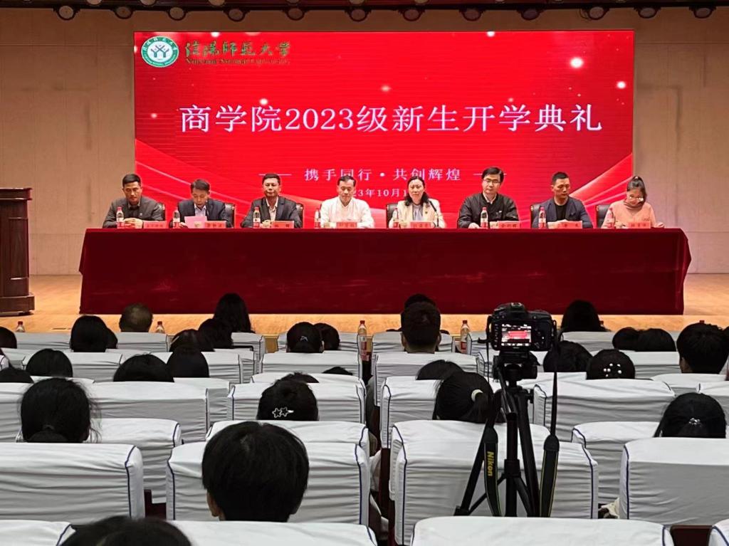10月10日晚七点,Bsport体育2023级新生开学典礼在理科楼报告厅举行。院长彭荣胜、副书记张海霞、副院长杜辉、副院长俞彤晖、副院长梁静波、大别山区经济社会发展研究中心秘书黄杰、工商管理系主任上官绪明、专职组织员韩月华、市场营销系主任孔栋及全体专兼职辅导员出席典礼,2023级全体新生参加典礼,本次活动由张海霞主持。